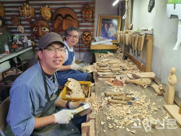 [고양신문] 아버지 신정철(66세, 숙련기술전수자 목조각 2013년), 아들 신민웅(42세,숙련기술계승자 목조각 2013년) 공동대표는 “아버지와 아들 사이여서 뜻이 잘 통해 목공예 길을 함께 걷고 있다”고 한다.