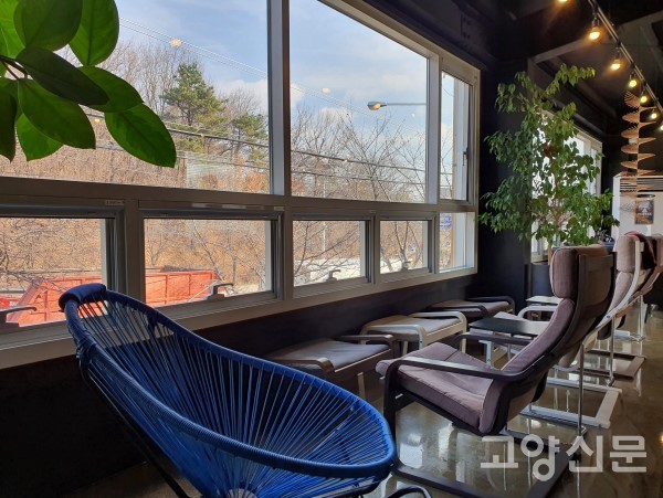 2층 휴게공간은 차량정비와 세차를 맡겨두고 휴양지 느낌의 안락한 의자에 앉아서 창밖의 사계절 변화되는 산자락의 풍경을 감상하며 힐링하는 공간이다.