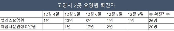 [고양신문] 고양시 두 곳의 요양원에서 5일에는 21명, 6일에는 20명의 확진자가 무더기로 쏟아졌다. 이어 8일에도 3명, 9일에도 1명의 추가 확진자가 발생했다.