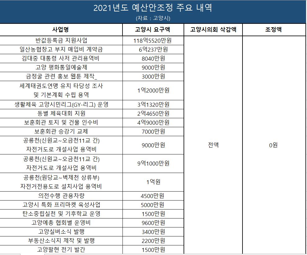 고양시의회 예산심사 결과, 총 83건 189억원 삭감