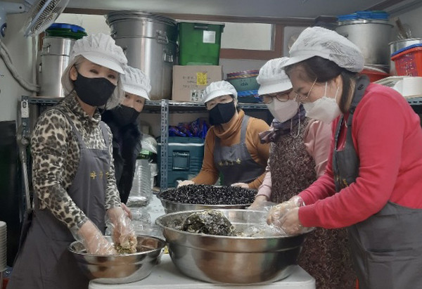 일산동구 마두1동 새마을부녀회(회장 배상은)가 지난 14일과 15일 양일에 걸쳐 지역의 어려운 이웃을 위해 밑반찬 만들기를 펼쳤다<사진>. 코로나19 확산 방지를 위해 최소 인원이 모여 장조림, 콩자반, 깻잎무침 등을 만들었고, 홀몸 어르신 등 관내 어려운 이웃 40여 가구 현관 앞에 비대면으로 전달했다.