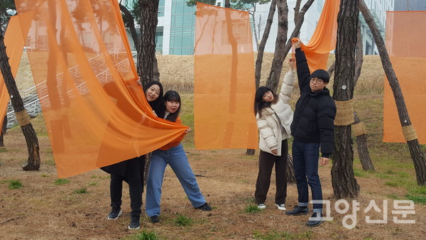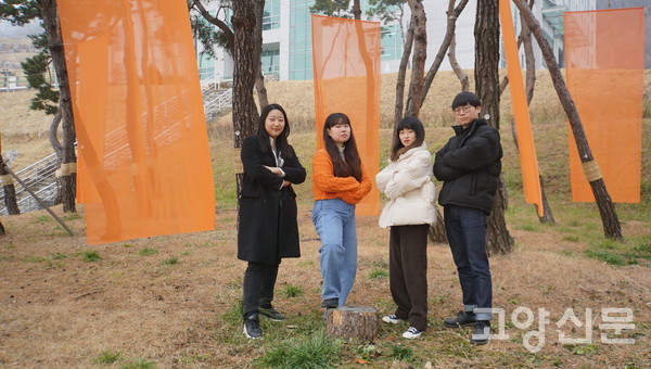 김병진 씨는 “교수님이 작품기획에서 홍보가 중요하다고 하셔서 교내 앱과 페이스북에서 홍보를 했어요. 지역신문에 나가면 좋겠다는 생각이 들어서 고양신문에 제보를 했는데 적극적으로 반응해주셔서 너무 감사했어요. 대단하지 않은 전시인데 우리이름이 담긴 기사가 뜨니까 신기하고 기분 좋았어요”라며 오늘의 이 기사가 고양신문 홈페이지에서 ‘가장 많이 읽은 기사’로 올라가는 것이 목표라고 말해 모두 함께 웃었다.