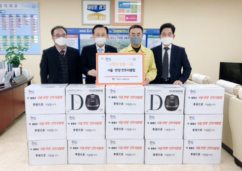 덕양구(구청장 김운영)에 코로나19와 한파를 뚫고 따뜻한 사랑의 손길이 전해졌다. 서울‧한양 컨트리클럽이 지난 5일 덕양구청을 방문해 밥솥 25개(600만원 상당)를 기탁했다. 지난해에도 쌀 100포를 기부한 서울‧한양 컨트리클럽은 매년 초 생활에 어려움을 겪는 지역주민들을 위해 기부를 진행해오고 있으며, 기부된 물품들은 독거노인, 조손가정 등의 취약계층에 전달되고 있다.