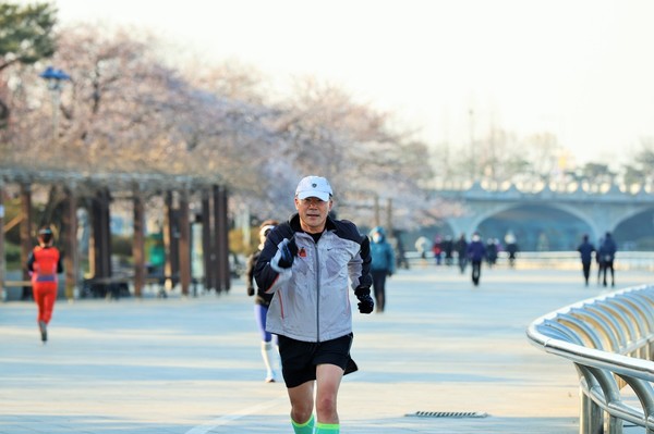 화제의 주인공은 일산서구 주엽동에 사는 한승기(57세)씨다. 한씨는 새벽에 신발끈을 조여매고 주로 인근의 호수공원을 찾았다. 여유가 되면 고양누리길을 달리는 날도 있었다. 어두컴컴한 새벽녘에 달리는 데 그치지 않고 컨디션이 좋으면 퇴근 후 저녁에도 뛰는 날도 있었다. 손목에 찬 러닝시계를 보면서 그날 하루의 기록과 누적 기록을 챙기면서 뛰긴 했지만, 처음부터 4219.5km를 목표로 둔 것은 아니었다.