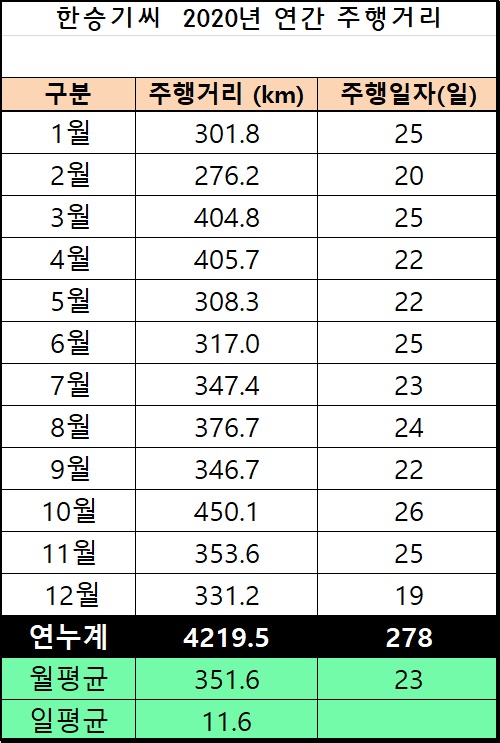 마라톤 풀코스의 100배 거리를 달린 사람이 있다. 4219.5km는 서울에서 부산까지 거리의 9배를 훌쩍 넘는 거리다. 10리가 4킬로이니까 1만리 이상을 달린 것이다. 무엇보다 이 기록이 놀라운 것은 직장을 가진 아마추어 마라토너가 작년 한 해 동안 이룩한 기록이라는 점이다. 이 기록은 365일 평균 11km를 하루도 빠짐없이 달려야 달성하는 기록이다. 그런데 작년 365일 중 실제로 달린 날자는 278일인데, 이 기준으로 치면 하루 평균 15km를 달린 셈이다.