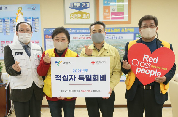 덕양구(구청장 김운영)가 지난 22일 덕양구청장실에서 '2021년 적십자 특별회비 전달식'<사진>을 가졌다. 대한적십자사 봉사회 고양지구협의회(회장 김정희) 관계자 등이 참석한 전달식에서 김운영 구청장은 김정희 회장에게 회비를 전달하며 나눔 문화 정착을 위해 사랑으로 봉사활동에 나서고 있는 적십자사 관계자들의 노고에 감사의 뜻을 전했다.
