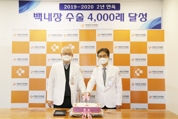 [고양신문] 일산 새빛안과병원(병원장 박수철)이 25일 병원 본관 9층 새빛홀에서 ‘2년 연속 백내장 수술 4000례 달성 기념식’을 진행했다고 밝혔다. 개원 이후 처음으로 2019년에 백내장 수술 4000례를 돌파하고 지난해에도 4000례를 연이어 달성하며 경기도 유일 안과전문병원에 걸맞은 실적을 기록한 것을 기념하는 행사를 연 것이다.