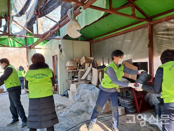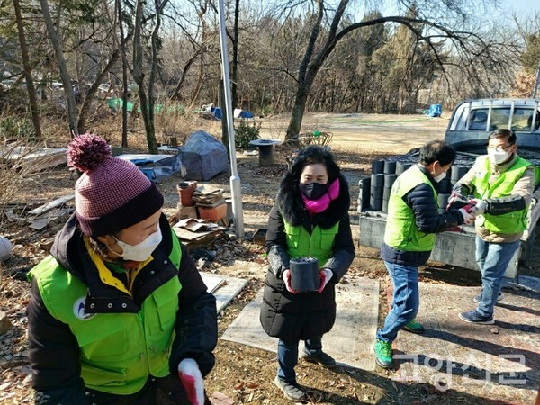 3일, 화전에 위치한 장애우 활동공간인 기쁨터에 연탄배달 봉사가 있었다. 대한민국 산을 보호하는 역할을 하는 (사)한국숲사랑총연합회 김필례 경기도 총재와 회원들이 참여하여 이 곳을 포함하여 총 5곳에 2,500장의 연탄을 배달했다. 산자락에 있고 코로나로 인해 연탄배달을 위한 봉사자의 손길이 뜸한 상황이어서 더욱 봉사하는 이들이 반갑다.