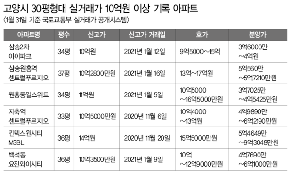 [고양신문] 전국적으로 집값 상승이 이어지고 있는 가운데 고양시에서도 10억원 이상 아파트가 속속 생겨나고 있다.