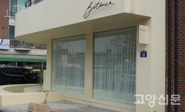 상아빛 외벽, 쉬폰 소재의 커튼이 드리워진 통유리가 멀리서도 눈길을 끈다. 입구에는 유칼립투스가 그려진 보태니컬 액자가 맞이하는 이국적 느낌의 카페다. ‘보타니카 바이선리(Botanica by sun lee)’라는 이름의 이 카페는 2019년 10월 오픈 이후로 인스타 맛집으로 등극, 주말이나 저녁시간에는 서울에서 20~30대의 카페 순례객이 찾아온다.