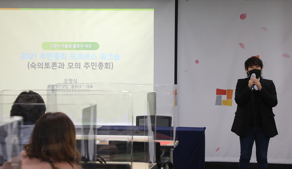 [고양신문] “마을공동체를 위해 고생하시는 활동가분들 모두 파이팅 하세요.” 권명애 고양시자치공동체지원센터장은 마을꿈활동가들의 노고와 역할에 고마운 마음을 담아 짧게 인사를 전했다. ‘2021 마을꿈활동가 네트워크 간담회’가 3월 26일(금) 낮 12시30분부터 저녁 6시까지 덕양구 화정1동 고양시노동권익센터에서 있었다. 이번 간담회는 마을공동체 간 교류 연계와 공모사업, 주민자치위원회 등의 활동을 지원하는 고양시 2021 마을꿈활동가들이 처음 함께한 자리로 인사를 나누며 강의와 소통의 시간을 가졌다.