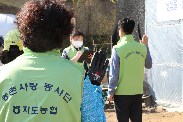 한편, 봉사활동 전에는 고양시농협 농촌봉사단이 농업을 위한 영농지원과 농촌봉사활동 역량집중으로 행복한 농촌을 만들어지는데 노력하고 참여하자는 결의를 다지기도 했다.