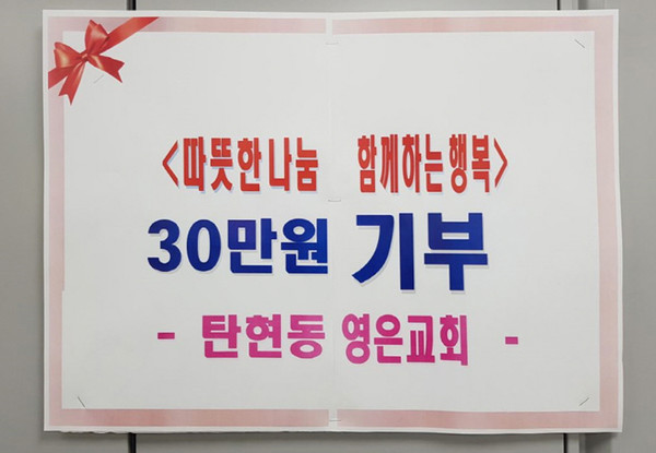 탄현동 영은교회, 독거노인 위해 30만원 기부