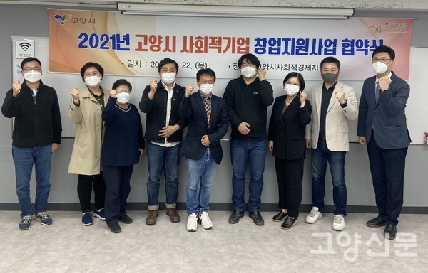 22일(목) 오후 3시 고양시 사회적경제지원센터 5층 공감마루에서 올해 사회적기업 창업지원사업에 선정된 6개 기업이 협약식을 가졌다. 김민수 센터장은 “고양시사회적 경제와 관련된 사업은 매우 높은 수준에 이르고 있고, 자생력이 매우 강한 장점이 있다”며 “”사업에 선정된 기업들이 이 번 사업을 잘 마무리하실 수 있도록 교육과 컨설팅 등을 준비하고 있으니 적극 참여해주시고, 센터에서는 성심성의껏 돕고자 한다.“며 축하의 인사말을 했다.