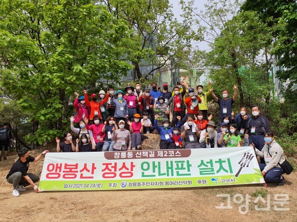 [고양신문] 창릉동(동장 이병영) 주민자치회(회장 임현철) 용머리산악회(회장 진경선)는 24일 앵봉산 정상에 안내판을 설치했다. 이날은 이병영 동장, 임현철 회장, 진경선 회장을 비롯해 한준호 국회의원(더불어민주당) 등이 참석했다.