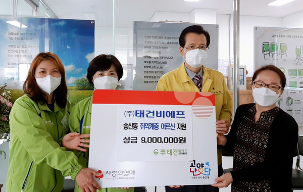 ㈜태건비에프(대표 김만석)가 지난 26일 송산동 행정복지센터에서 지역 내 독거어르신과 취약계층 등을 지원하기 위해 분기마다 300만원씩 총 900만원을 후원하기로 했다. 일산서구 송산동에 소재한 전기자재 제조업체인 ㈜태건비에프는 장애인 고용 우수사업장 인증을 받은 업체로 다양한 소외계층을 위해 지속적인 기부 활동을 펼쳐오고 있는 상생고용과 나눔을 실천하는 모범 기업이다.