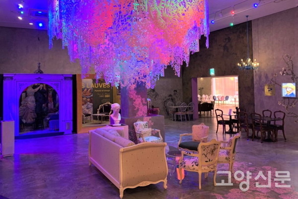 페이퍼 커팅으로 꾸민 장식은 조명에 따라 색이 바뀐다. 명화 영상, 클래식한 가구들, 전위적인 샹들리에가 만들어 내는 환상적인 풍경은 방문객들의 포토존이다. 안쪽은 이곳의 하이라이트 공간인 모네 전시장으로 이어진다.