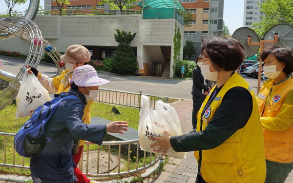 일산동구 풍산동 적십자봉사회(회장 김영자)는 지난 3일 풍동 숲속마을 1단지 에서 저소득층 주민과 독거어르신을 대상으로 국수 나눔 활동을 가졌다. 이날 나눔 활동은 풍산동 적십자봉사회가 주관해 진행했으며 숲속마을 1·4단지에 거주하는 저소득층 주민과 독거어르신 200명에게 1인당 국수 2.5kg을 전달했다. 동시에 코로나19 확산에 따른 방역 수칙 지키기 캠페인을 펼치기도 했다.