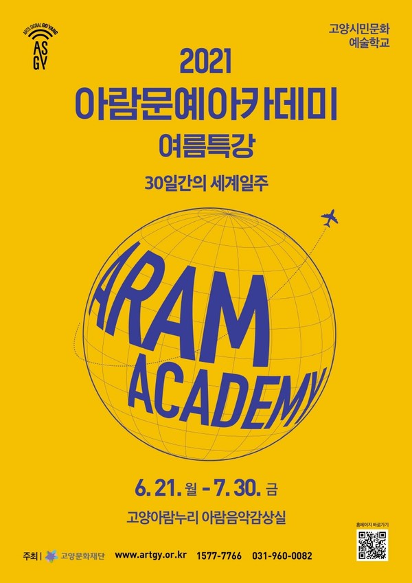 한편, 고양문화재단은 온라인 라이브 생중계 종료 이후 15일간 다시 볼 수 있는 스트리밍 서비스도 제공할 예정이다. 아람문예아카데미 온라인 클래스에 대한 보다 자세한 사항은 고양문화재단 온라인교육 홈페이지(https://edu.artgy.or.kr/main/index.jsp)를 통해 확인할 수 있다.