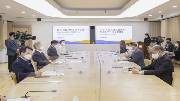 협약에 따라 양 기관은 ▲IP융·복합 산업 육성을 위한 중장기계획 수립 및 설립추진단 구성·운영 ▲IP융·복합 콘텐츠 선순환 생태계 성장 기반 IP콤플렉스 건립 및 운영 ▲IP융·복합 활성화 및 콘텐츠기업 성장 지원 프로그램 운영 ▲IP융·복합 콘텐츠 선순환 투자 환경 조성 ▲IP융·복합 파트너십 구성 및 글로벌 플랫폼 구축 등에 상호 협력하기로 했다.