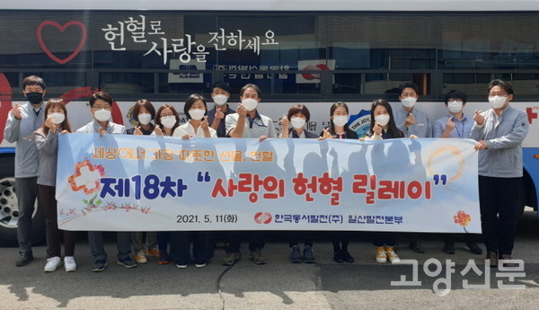 [고양신문] 한국동서발전(주) 일산발전본부(일산열병합발전소) 직원 20여 명이 11일 사랑의 헌혈 릴레이에 동참했다. 일산발전본부 관계자는 “코로나19 장기화에 따른 단체헌혈의 급감으로 혈액 수급에 큰 차질이 빚어지고 있는 가운데, 위기에 처한 이웃들에게 따뜻한 사랑을 전하기 위해 사랑의 헌혈 릴레이를 시행했다”고 설명했다.
