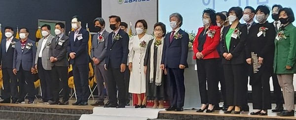 [고양신문] 고양시영남향우회가 13일 YMCA유스호스텔 연회장에서 제12대 최실경 회장과 13대 장도영 회장의 이취임식 행사를 개최했다.