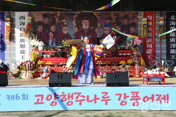 제6회 고양 행주나루 강 풍어제가 지난 2일 고양시 행주산성 역사공원에서 녹화공연으로 진행되었다. ‘문화예술의도시’ 고양의 전통문화를 복원하고 전승하기 위해 국비 공모사업에 선정된 이 행사는 고양시 행주역사공원을 콘텐츠로 삼아 행주산성 문화브랜드 작품으로 키워나가는 것을 목적으로 하고 있다. 고양문화원(원장 이승엽)이 주최했고 고양 행주나루 강 풍어제 보존회(회장 김용희)가 주관했다.