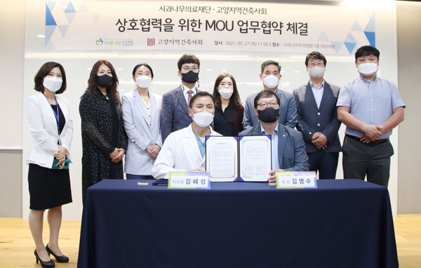 이날 협약식에는 사과나무의료재단 임직원과 고양지역건축사회 김영수 회장, 권혁규 부회장, 김희수 부회장, 유선 창성이엔지 건축사무소 대표, 정은영 건축사무소 미고 대표, 이미자 고양지역건축사회 부장 등이 자리를 함께 했다.