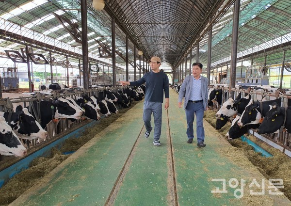 [고양신문] 김숙배(아버지 61세), 김요한(아들 29세) 마동목장 대표는 “1985년 젖소 3마리로 축산업을 시작했는데, 지금은 송아지 포함해 200두의 젖소를 3000여평 목장에서 고양시에서 가장 큰 규모로 하고 있다”고 목장을 소개했다.
