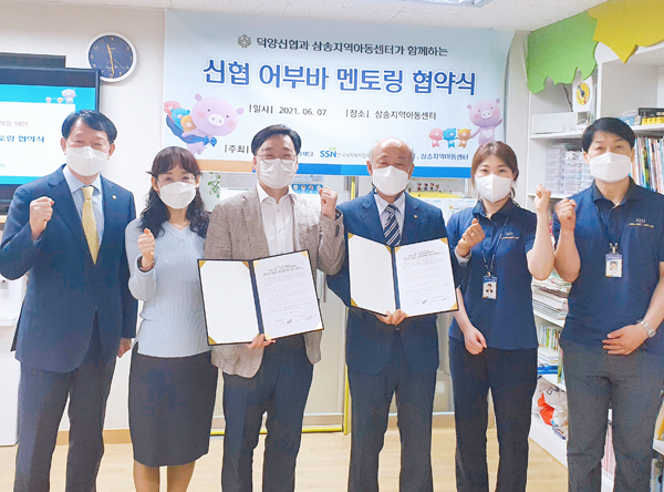 [고양신문] 덕양신협(이사장 박해용)이 7일 덕양구에 있는 삼송지역아동센터에서 ‘2021신협 어부바 멘토링’ 협약을 체결했다. 덕양신협은 미래 세대에게 다양한 교육기회를 제공해 지역사회 발전과 상생에 기여하기 위해 업무협약을 맺고 발대식도 진행한 것.