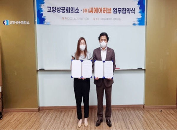 [고양신문] 고양상공회의소(회장 권영기)와 ㈜씨에어허브(대표이사 장현진)이 21일 고양상공회의소 중회의실에서 고양시 기업의 수출입 역량강화와 글로벌 매출성장을 도모하기 위한 업무협약을 체결했다.