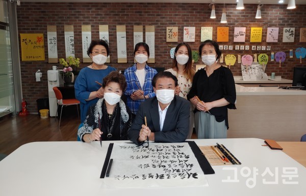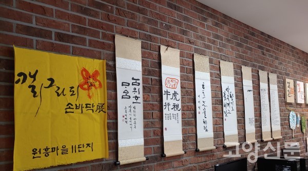 [고양신문] 고양 삼송 LH 원흥마을11단지(LH주거행복지원센터,센터장 오재은) 작은도서관에서 7일 ‘캘리그라피 손바닥전’이 열렸다.