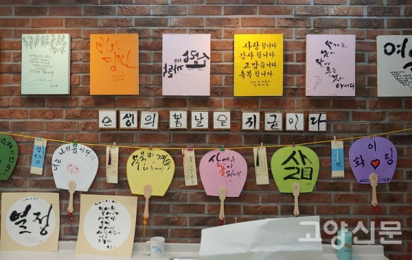 이달 22일까지 열리는 이번 전시는 서재철 강사(수중 서재철 캘리그라피 연구소 대표작가)의 강의를 들은 입주민 8명이 교육이 끝나고 작품들을 모아 진행하게 됐다.