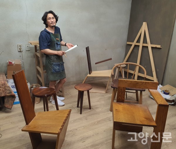 이곳 공방에는 개방감을 위한 한쪽 팔걸이 의자, 우아한 곡선이 들어간 가구 등 대부분 감성이 깃든 원목가구들이 제작되어 놓여 있다. 김영찬 작가는 “시간이 지나도 정겹고, 오랫동안 쓰임 받는 가구를 앞으로도 만들겠다”고 말했다.