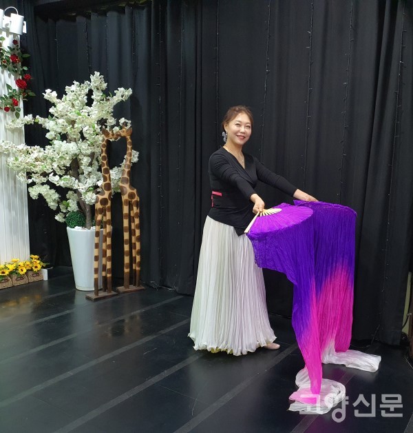 [고양신문] 차정숙 밸리댄스 공연단 팀장은 “팬 베일 밸리댄스로 아름다운 공연을 펼칠 때면 관객들이 열정적으로 환호해주신다. 공연 현장에서 또 다른 에너지를 받을 수 있어 행복함을 느낀다”고 말했다.