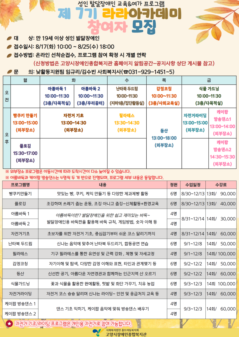 고양시장애인종합복지관, 접수 8/17(화) ~ 8/25(수)