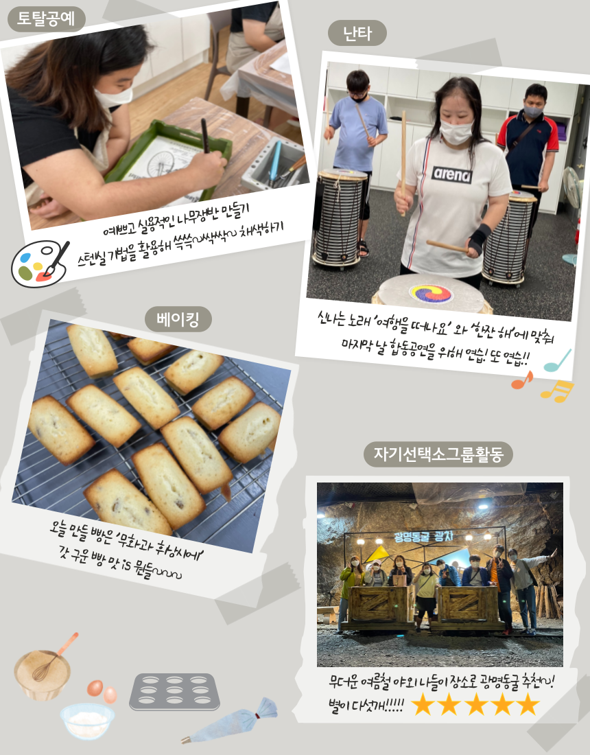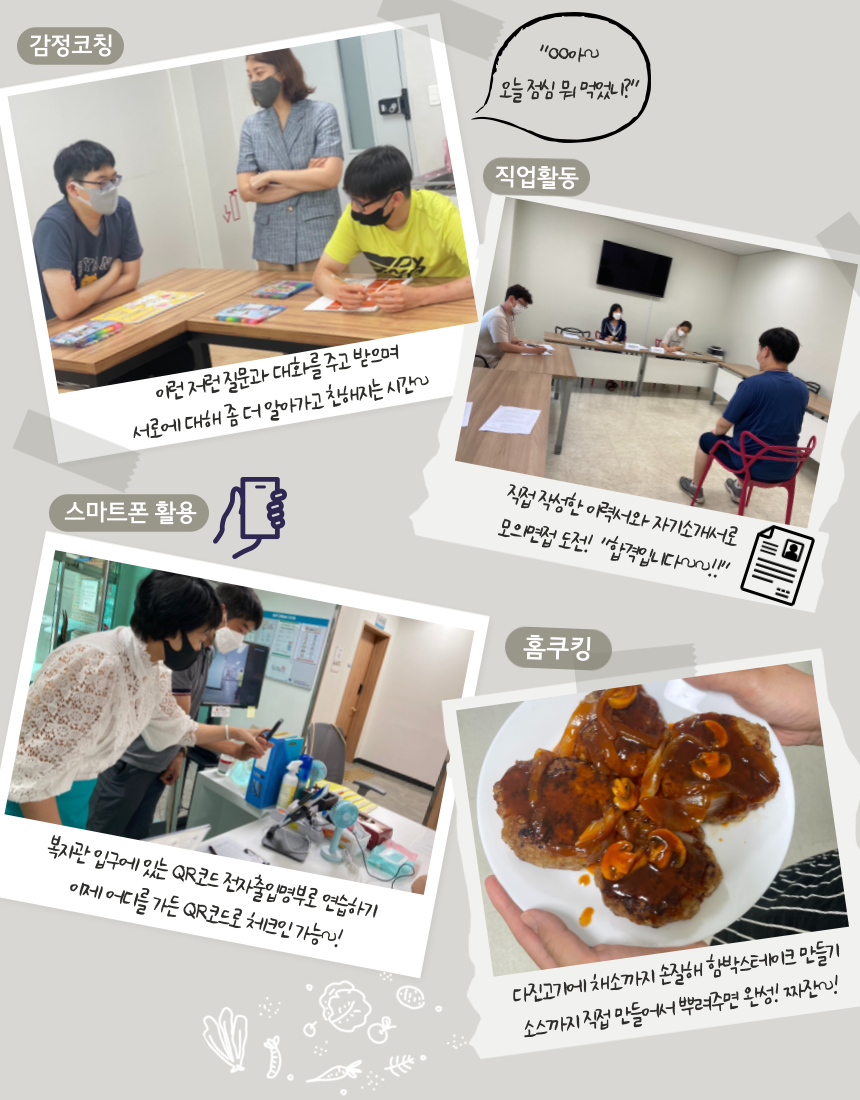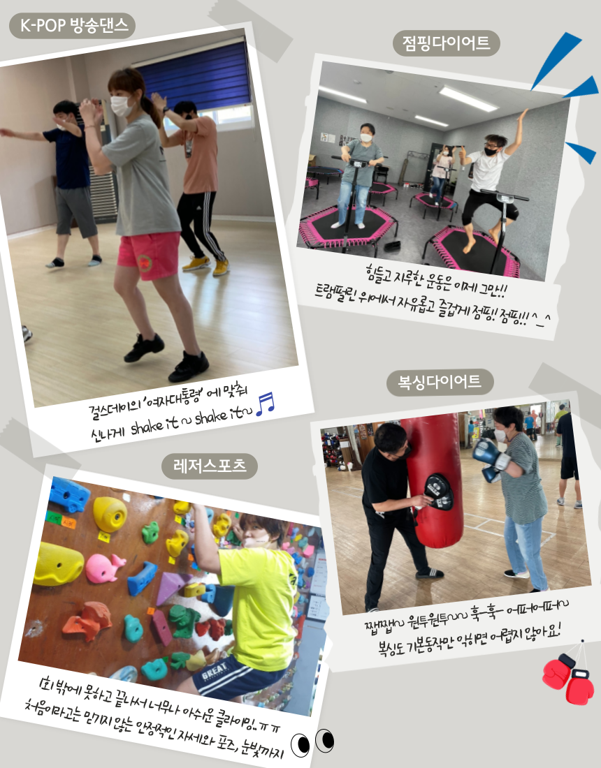 이번 6기 과정은 감정코칭, 홈쿠킹, 스마트폰 활용, 직업활동, 베이킹, 난타, 토탈공예, 레저스포츠, K-POP 방송댄스, 복싱다이어트, 점핑다이어트, 자기선택소그룹활동 총 12개 프로그램으로 진행됐다.