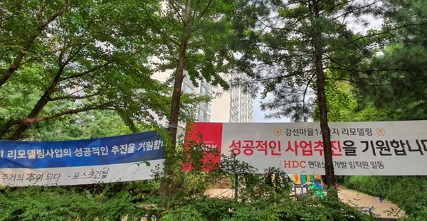 리모델링 시장으로 눈을 돌리는 대형 건설사들도 리모델링 바람을 고조시키고 있다. 재건축보다 규제가 덜한 리모델링 시장이 커질 것으로 내다본 대형 건설사들이 시공권을 따내기 위해 가능성이 있는 아파트 단지에 경쟁하듯 자사 로고가 들어간 현수막을 내걸고 있다. 포스코건설, 대우건설, GS건설, 롯데건설 등이 내건 현수막에는 천편일률적으로 ‘리모델링사업의 성공적 추진을 기원합니다’라는 문구가 있다. 이들 대형 건설사들이 먼저 추진위에 손을 내밀어 성사된 간담회가 고양시 몇몇 아파트 단지에서 진행되기도 했다.