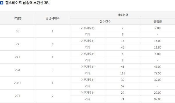 지난 5일 청약 마감된 덕양구 ‘힐스테이트 삼송역 스칸센 2블록과 3블록에 있는 회사보유분 오피스텔 25실이 공급됐는데, 여기에도 844명이 몰려 평균 33.8대 1의 경쟁률을 보였다.