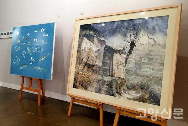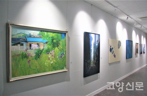 [고양신문] 고양미술협회에서 활동 중인 ‘울프회(회장 백경원)’ 회원들이 ‘찾아가는 전시회’를 열었다. 파주시 상지석동에 있는 회사 ‘멕아이씨에스(대표 김종철)’의 ‘멕갤러리’에서 진행 중인 이번 ‘울프전’에는 유화와 수채화, 공예품까지 20여 작품을 전시 중이다. 작가들은 모두 한국미술협회 소속으로, 전문 갤러리가 아니면 보기 힘든 대작들이다.