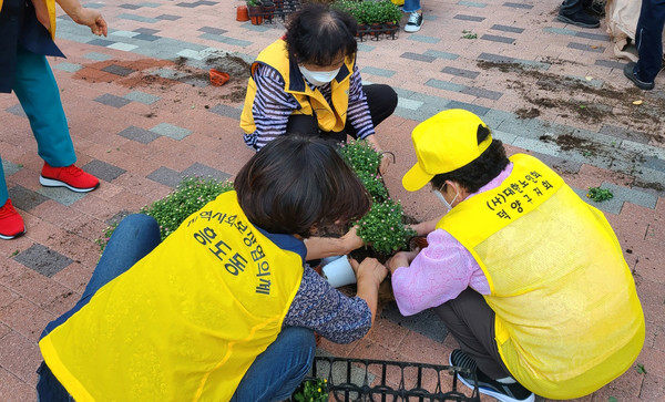 덕양구 흥도동(동장 김선미)이 지난 9월 15일, 원흥마을 11단지 관리사무소와 흥도동 복지협의체 위원들과 함께 국화심기를 펼쳤다. 이번 행사는 코로나19로 지친 주민들의 삶에 활력을 더하고 쾌적한 환경을 조성하기 위해 진행됐다. 자진해서 행사에 참여한 경로당 어르신들은 한데 모여 아파트 산책로 화분에 국화를 심으며 가치있는 시간을 보냈다.