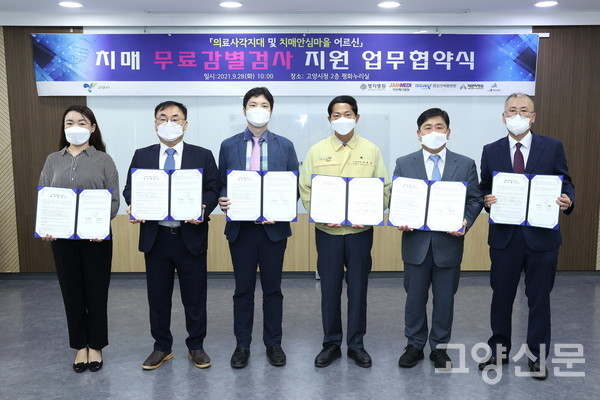 시는 28일 지역 내 5개 병원(명지명원, 자인메디병원, 해븐리병원, 복음병원, 고양휴메디병원)과 ‘치매감별검사 무료지원 사업 업무협약식’을 개최했다.