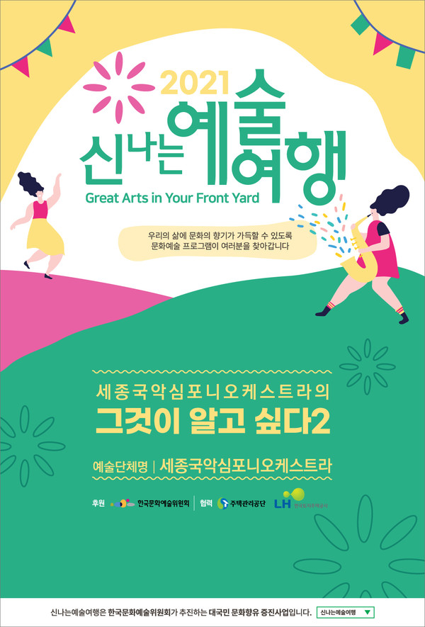 한국문화예술위원회 신나는 예술여행 사업의 일환인 이번 공연은 전국 임대아파트단지와 복지시설을 포함한 10여 개 시설을 방문해 진행한다. 코로나19 방역수칙에 따라 일부 시설은 비대면 공연 영상을 상영할 예정이다. 이번 신나는 예술 여행은 세종국악심포니오케스트라가 주최·주관하고, 한국문화예술위원회가 후원하며, 주택관리공단이 협력한다.