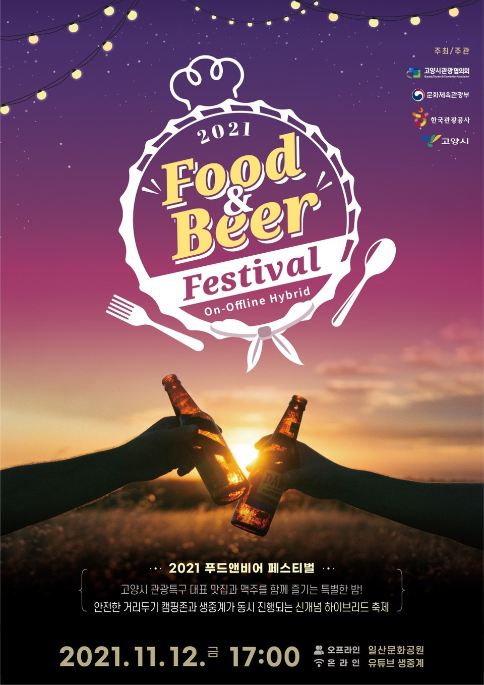 고양시관광협의회가 주최하고 문화체육관광부와 한국관광공사, 고양시가 공동주관하는 2021 푸드앤비어 페스티벌은 안전한 축제 구성을 기반으로 시민중심형, 지역상권연계형의 고양시 종합 축제다.