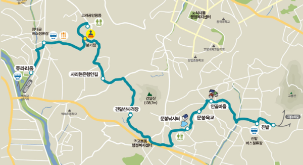 - 경관·휴식 포인트 : 문봉육교 북한산 전망, 사리현동 숲길, 원당천 산책로