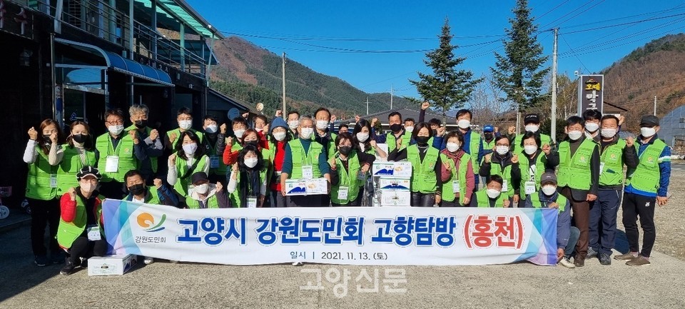[고양신문] 고양시 강원도민회(회장 이성규)가 지난 13일 강원도 평창·홍천군 지역을 방문해 지역특산물구입 및 시장 장보기로 지역경제살리기와 농촌일손돕기 봉사활동, 마을회관 복지나눔을 실천하고 고향의 맛과 정을 듬뿍 느끼는 의미있는 시간을 가졌다.