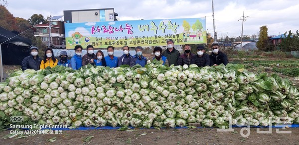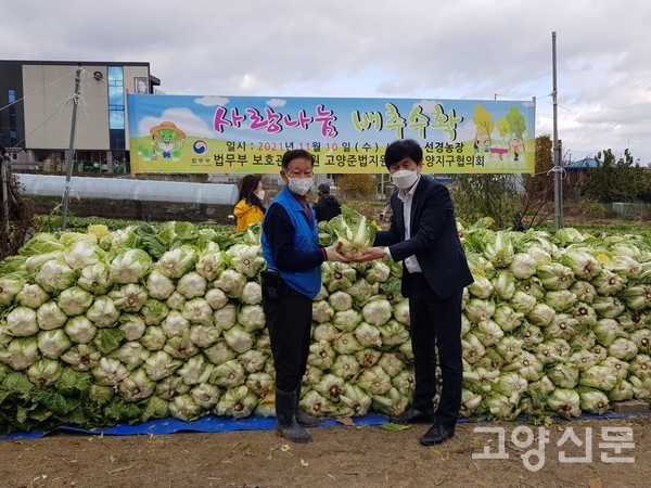 하루가 다르게 겨울추위가 다가오던 지난 10일, 법무부 보호관찰위원 고양준법지원센터 고양지구협의회(회장 이흥윤)에서는 8월에 파종했던 배추와 무를 수확해 지역 각 기관에 골고루 배부했다. 이날 배추와 무를 받은 기관은 효샘재가 노인지원 서비스센터(센터장 강경석) , 은빛사랑채 노인 주·야간보호센터(센터장 고은주), 고양 노인 복지센터(원장 이순이), 행주동 바르게살기위원회(회장 김나경)과 어르신들 가정에 전달했다. 이날 각 기관에 전달한 배추는 3100 포기, 무는 약 2톤 이다.