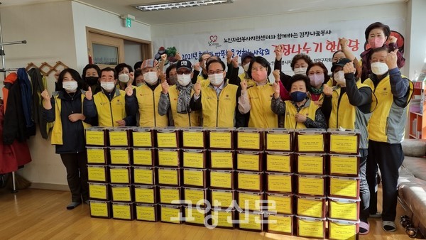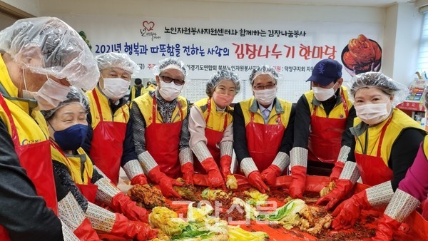 [고양신문] 대한노인회 경기북부연합회(연합회장 우일덕)가 지난 12일 덕양구 도래울마을 6단지 경로당에서 사랑의 김장 담그기 행사를 진행했다.