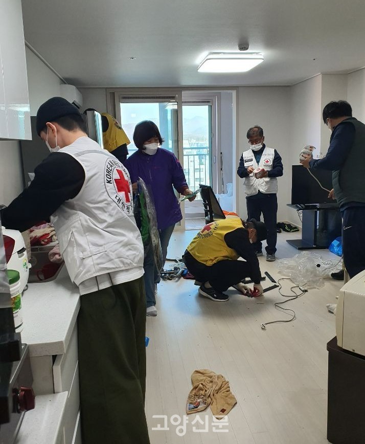 [고양신문] 대한적십자 원당봉사회(회장 이광희)가 희망풍차 결연세대 이사를 도왔다. 15일 원당봉사회원, 금성의집 형제들, 정운란 고문 등 15명은 이삿짐을 싸고 나르고 정리했다.