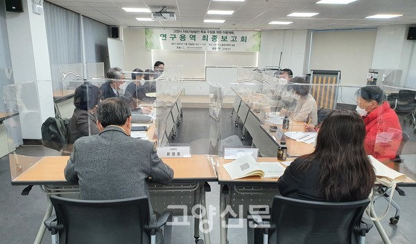 [고양신문] 고양시 지속가능발전협의회(이하 고양지속협)가 16일 고양시노동권익센터에서 ‘고양시 지속가능발전 목표 수립을 위한 이행계획’ 연구용역 최종보고회를 가졌다. 최종보고회에는 윤정중 상임회장 등 고양지속협 위원들과 전문가 등 관계자 20여 명이 참석했다.
